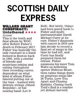 Robert Fisher of Willard Grant Conspiracy died of cancer on 12th February 2017. He had been suffering throughout 2016 but typically of the man he never made any fuss whatsoever. He was busy still holding down his day job and recording tracks for his 11th album. We first heard his music back in 1999 when Loose were doing press for Slow River/Rykodisc. The album was called “3am Sunday @ Fortune Otto’s”. It totally blew us away – this was music from another planet…and the voice…Robert Fisher sang as though he had already seen, understood and lived through the big picture. A booming baritone, capable of both immense power and heart-breaking subtlety. Loose worked the press for his early albums and then were honoured to start releasing his albums ourselves, starting with the out and out classic Regard The End in 2003. Willard Grant Conspiracy were a collective, with as many as 30 members coming and going over the years, as Robert himself said “if someone says they play with us they probably do”. But it was Robert who was the beating heart of the band, in fact many people thought he was called Willard. So now Robert has gone, it’s awful, it’s sad, it’s difficult to come to terms with. But we have his music, music that was often pre-occupied with death, but as Andrew Mueller commented “was also strangely life-affirming”. So put on a WGC album, crank up the volume – and wish him well.